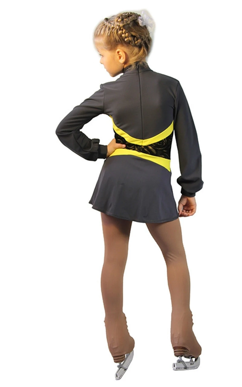 Training dress “Jackson” from Italian Vuelta techno- fabric We are glad to present a novelty version of a favorite outfit for small athletes. Our new dress will give confidence, charm and coquetry to a young figure skater , complimenting and enhancing the dignity of all shapes. The unusual design of the waist line, combined with different fabric textures and colors, make the slender silhouette and highlight your child on the ice. Soft velvet, from beneath which emerges the figure “rose”, makes the model very feminine. We can recommend this dress not only for training but for the first scoring performances of the beginner skaters. As the youngest of them need protection from the cold even in the most crucial moments, the dress is completely made of techno-fabric.