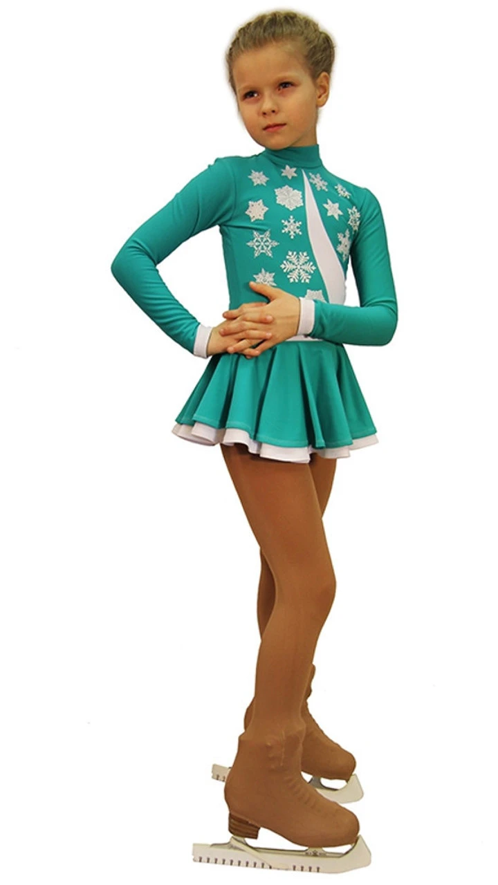 Training dress “Snowflake”is made of Italian Vuelta techno-fabric We are pleased to introduce one of the most unusual lineup of dresses from the collection of the new season. The model, developed by our designers, is perhaps the most original. For the first time in the development of this model we used a thermal transfer applique “Snowflakes”, which inspires an amazing ice mood. Double layer skater skirt-bottoms sewn into the Empire waist line makes the dress especially flirty and playful.Of course, we care about practicality. Fabrics from which we sew this dress, specially designed for the production of sportswear. Soft, warm, pleasant to the touch fabric is the perfect complement to the magnificent design of the model and provide a lovely color scheme. Also, we can recommend this model not only for training. Because such a dress would be appropriate on the first scoring performances of novice Champions. Your child will look solemn and be perfectly protected from the cold.