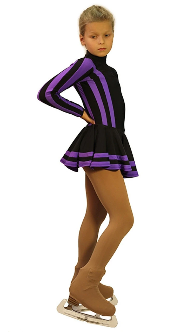 Training dress “Star” is made of Italian techno-fabric Vuelta. This is one of the novelties of the model range of dresses 2015-2016. Absolutely everything in this model is attracting attention: the color combination, the bright sporty design and the original design decision. Asymmetrical cut, unusual line on which a double layered skirt is sewn, the stripes of the sleeves – all this attracts the eye. In this dress your child will be guaranteed to stand out on the ice and feel like a leader. And it’s so important. Of course, we care about practicality. Fabric from which we sew this dress, specially designed for the production of sportswear. Soft, warm, pleasant to the touch fabric is the perfect complement to the magnificent design of the model and provide a lovely color scheme.