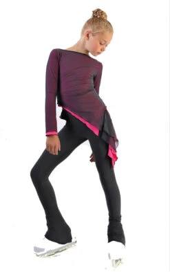 IceDress – Thermal Figure Skating Outfit “Gravity” – Mesh Top And Pants (Fuchsia/Burgundy And Black)