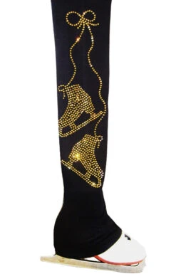 Figure Skating Pants With Gold Rhinestones “Pair Of Skates” Applique